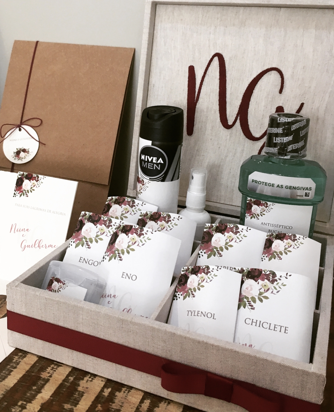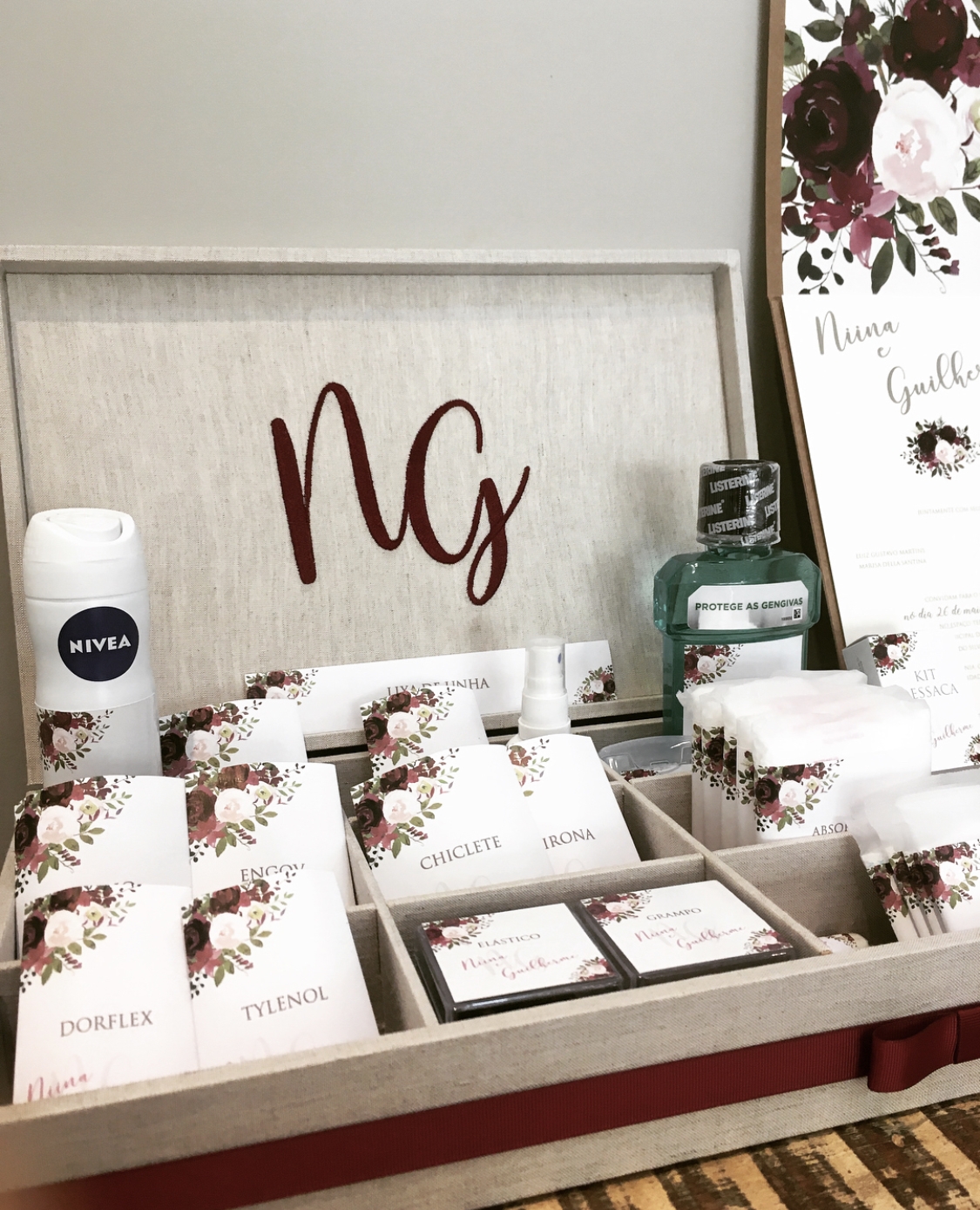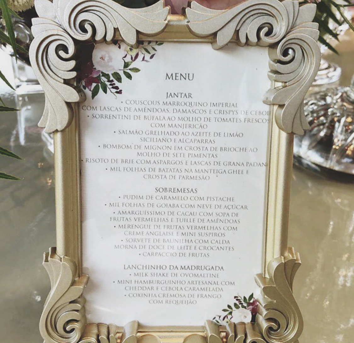 Pensa numa festa bonita. Com direito a valsa ensaiada e muito romantismo. Eles optaram por servir um jantar tradicional e também oferecer sushi. A festa vai até a madrugada com direito a milk shake de ovomaltine e mini burgers! Além disso, um stand para as convidadas criarem seus próprios esmaltes personalizados e um cantinho da MAC com direito a muita maquiagem para os retoques durante a festa. Nos banheiros um kit salva vidas com antisséptico bucal, remedinhos para a ressaca, desodorante e muito mais!